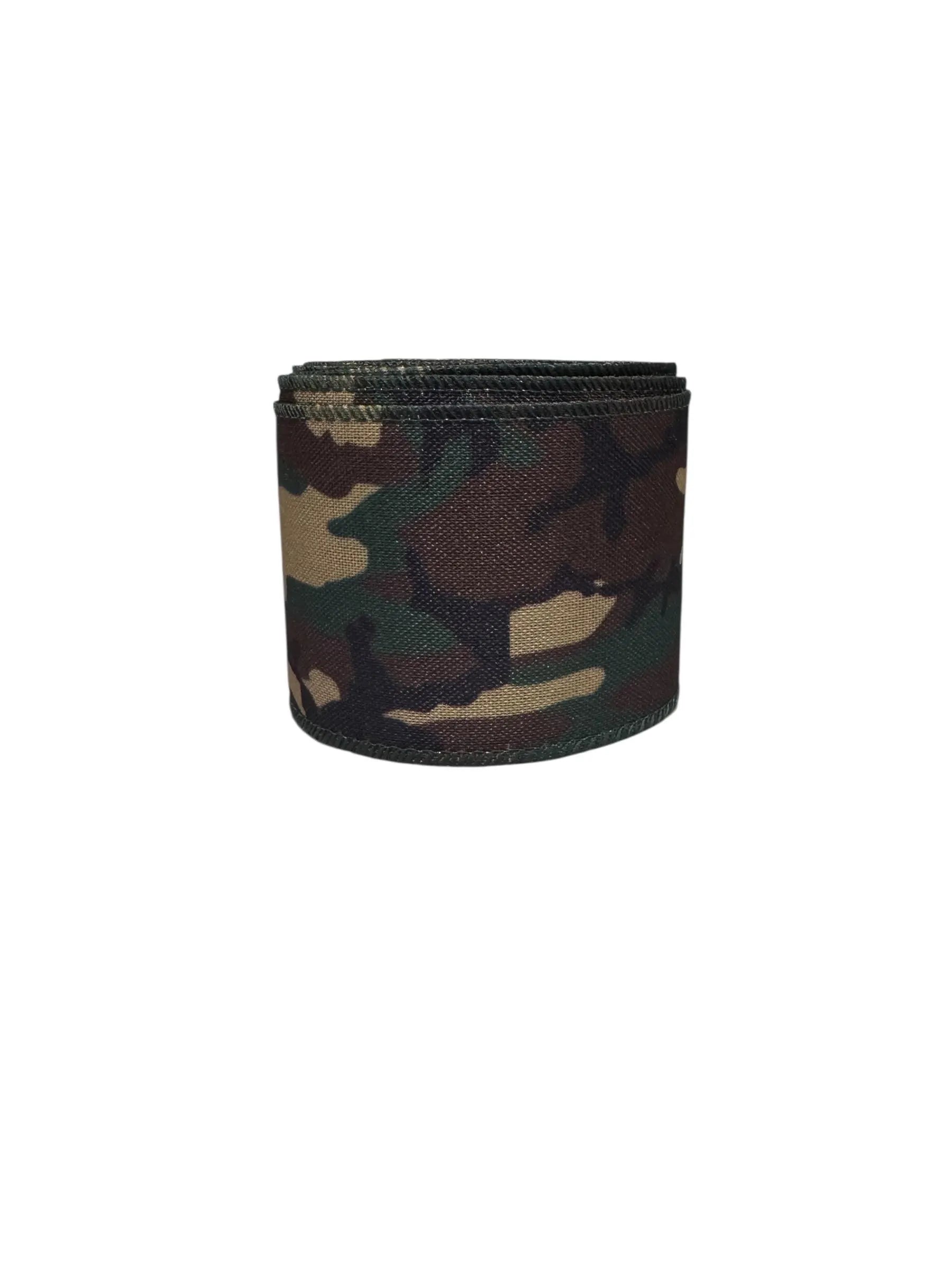2.5" Wide Wired Dark Green CAMO Ribbon On Canvas